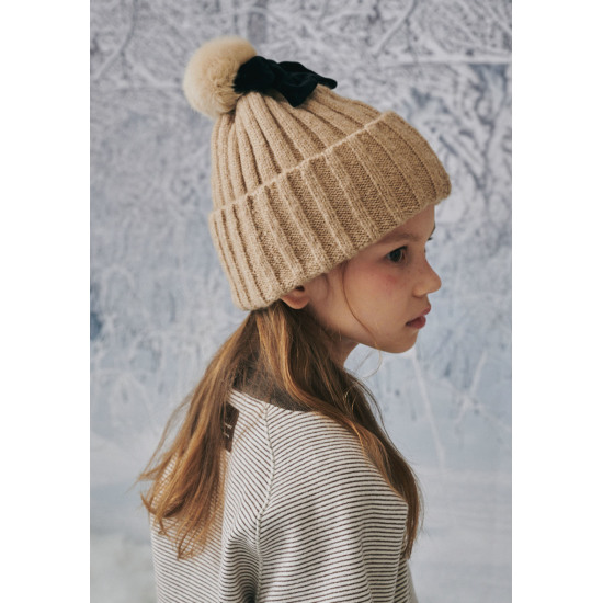 사랑스러운 디자인의 여아용 베이지 니트 비니로, 부드럽고 포근한 착용감이 돋보이는 윈터 아이템입니다. 따뜻한 벨벳 블랙 리본과 아이보리 털방울 디테일이 더해져 귀엽고 사랑스러운 겨울 스타일을 완성해 줍니다. BZ64AM01BN 퍼카라와 셋업으로 매치하면 통일감 있는 스타일링이 가능하며, 맨투맨, 코트, 점퍼 등 다양한 아우터와도 잘 어우러져 데일리로 활용도 높은 아이템입니다.