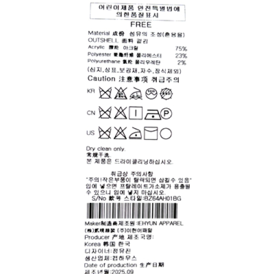본 상품은 어린이제품 안전특별법 공급자 적합성 대상품목으로 아래의 어린이제품 안전특별법 공급자 적합성 을(를) 필하였습니다.