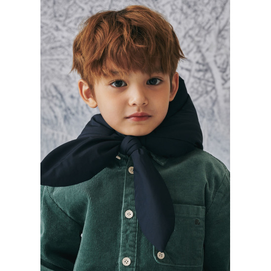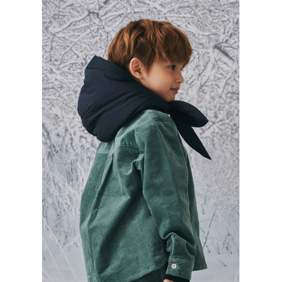 다크 네이비 컬러의 패딩 후드 머플러입니다. 스태디한 컬러로 다양한 스타일링에 매치하여 포인트를 줄 수 있는 아이템입니다. 유니크한 디자인으로 가볍고 따뜻하며 다양한 스타일링에 활용도가 높은 아이템입니다. 여유 있게 묶어 스카프처럼 연출하거나 리본처럼 귀엽게 연출할 수 있는 스타일로 유니섹스 아이템입니다.