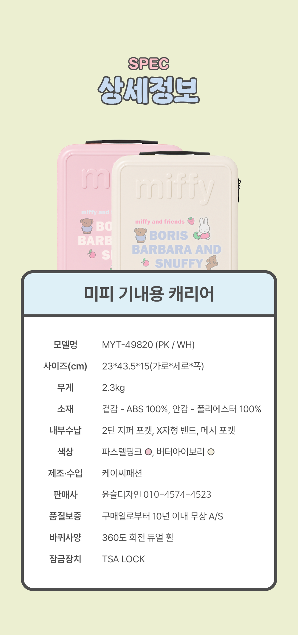 귀여운 미피 일러스트 그래픽 기내 캐리어