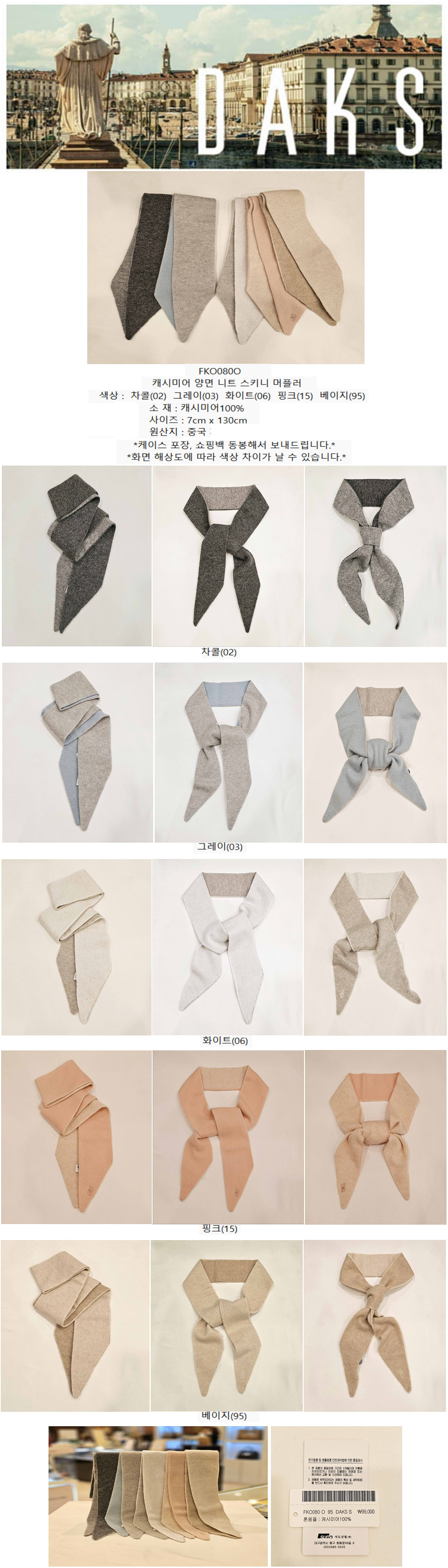 대구백화점 닥스캐시미어 양면 니트 스키니 머플러(FKO080O)