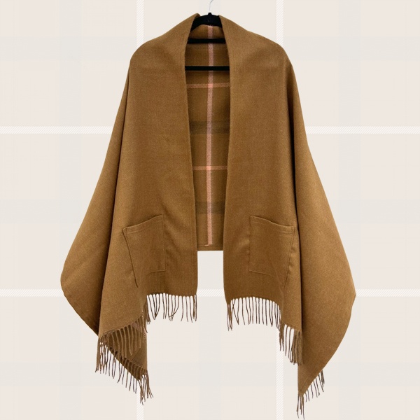 종류 : 포근한 울혼방 브라운 체크양면 포켓숄