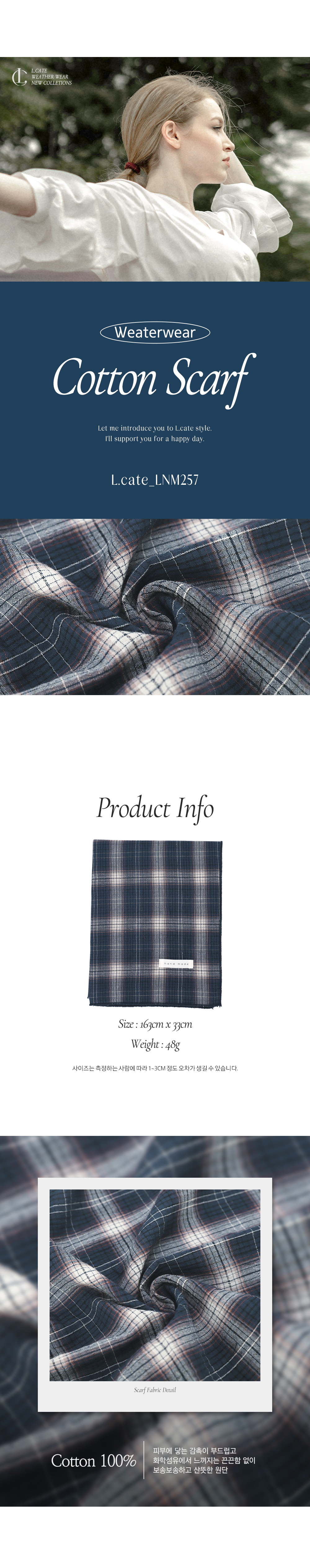 (현대Hmall)엘케이트 여자 스카프 면 체크 봄 가을 간절기 머플러 LNM257