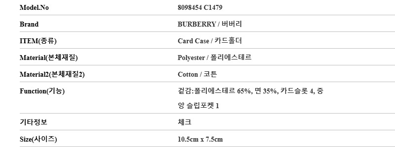(현대Hmall)버버리 남녀공용 체크 카드 지갑(8098454 C1479)