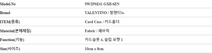 (현대Hmall)발렌티노 여성 트왈 아이코노그래피 카드 지갑(5W2P0Z41 GXB 6ZN)
