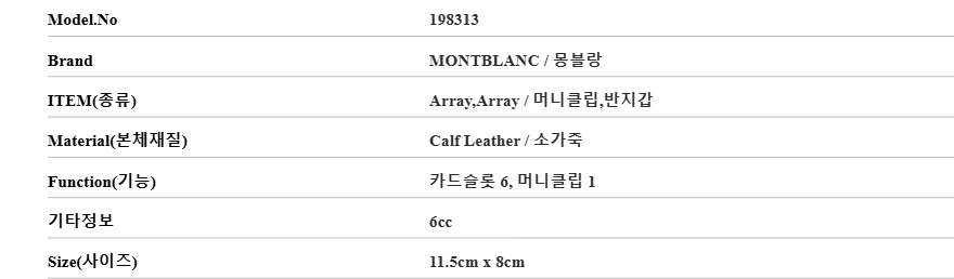 (현대Hmall)몽블랑 남성 마이스터스튁 6cc 머니 클립 지갑(198313)