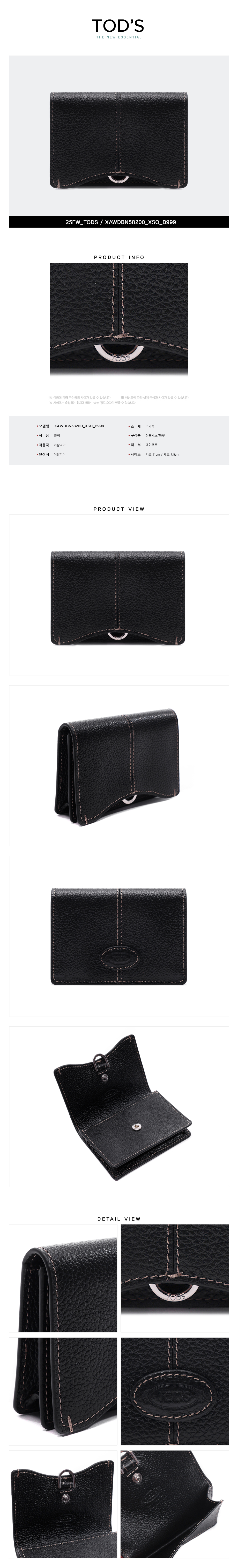 (현대Hmall)토즈 25FW 여성 스탬핑 로고 명함 카드지갑 (XAWDBN58200 XSO B999 25F)