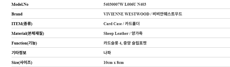(현대Hmall)비비안웨스트우드 여성 나파 카드 지갑(54030007W L006U N403)