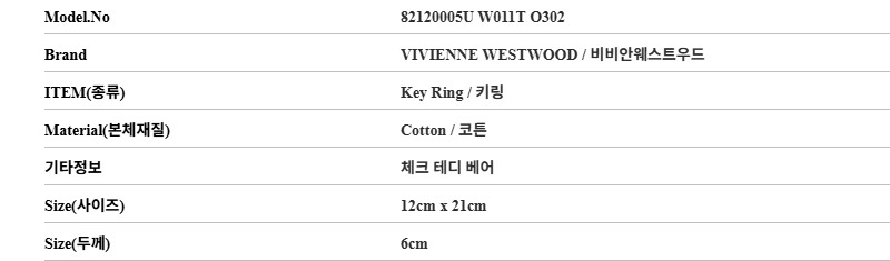 (현대Hmall)비비안웨스트우드 여성 체크 테디 베어 키링 키홀더(82120005U W011T O302)