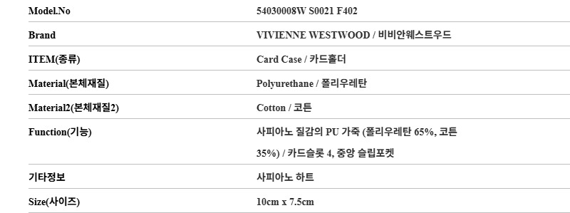 (현대Hmall)비비안웨스트우드 여성 사피아노 하트 카드 지갑(54030008W S0021 F402)