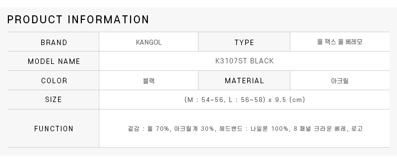 (현대Hmall)캉골 남녀공용 Jax Beret 베레모 모자(K3107ST BLACK)