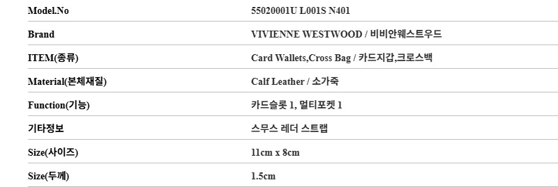 (현대Hmall)비비안웨스트우드 여성 스무스 레더 스트랩 카드 지갑(55020001U L001S N401)