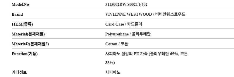 (현대Hmall)비비안웨스트우드 여성 사피아노 비즈니스 카드 지갑(5115002DW S0021 F402)
