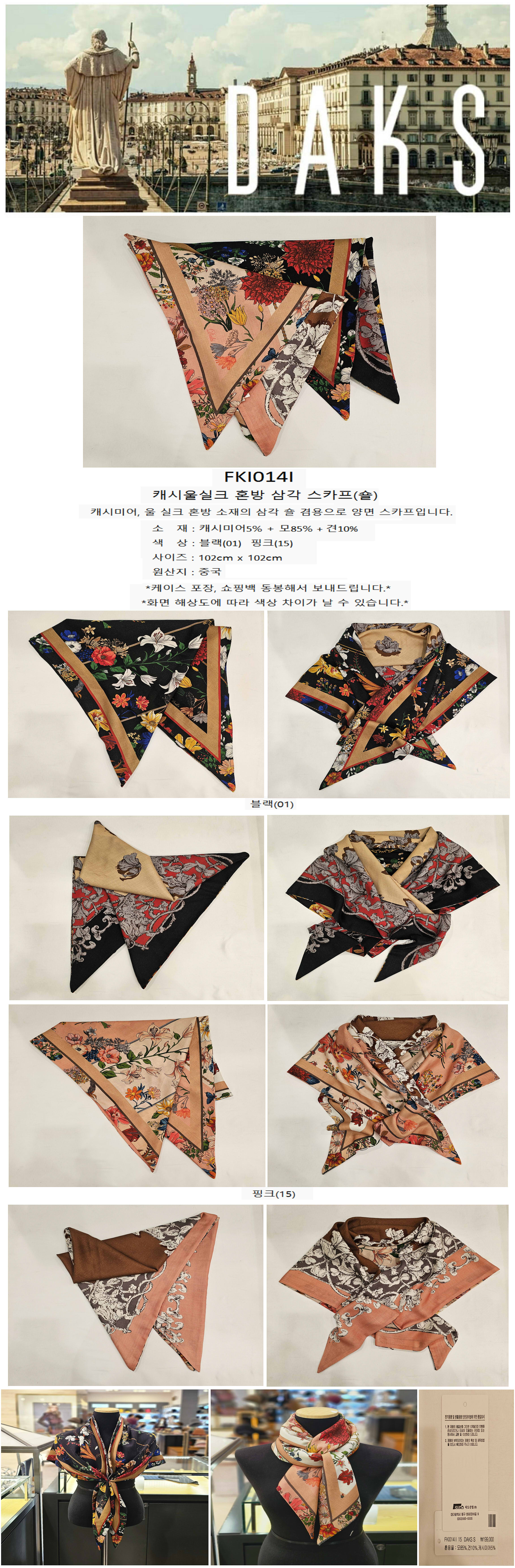 대구백화점 닥스캐시울실크 혼방 삼각 양면 스카프(FKI014I)