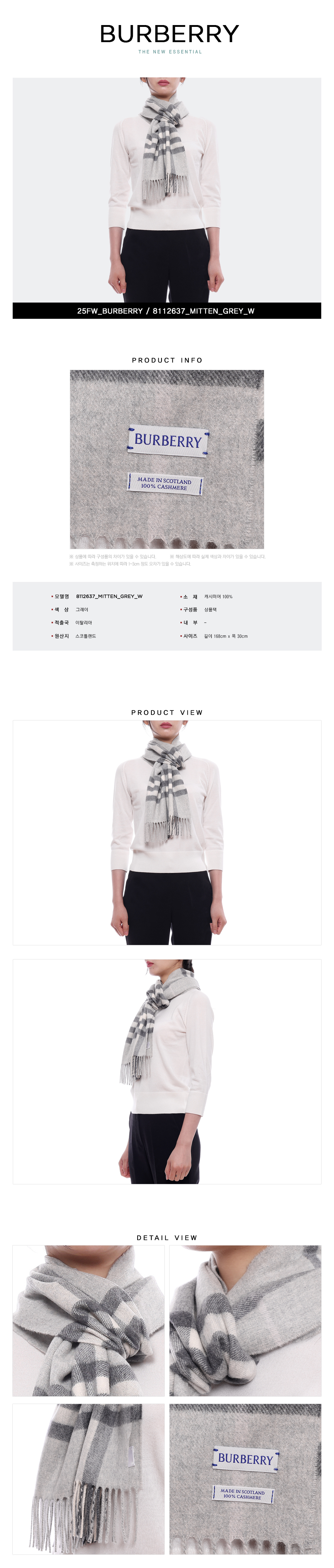 (현대Hmall)버버리 25FW 여성 체크 캐시미어 머플러 (8112637 MITTEN GREY W 25F)