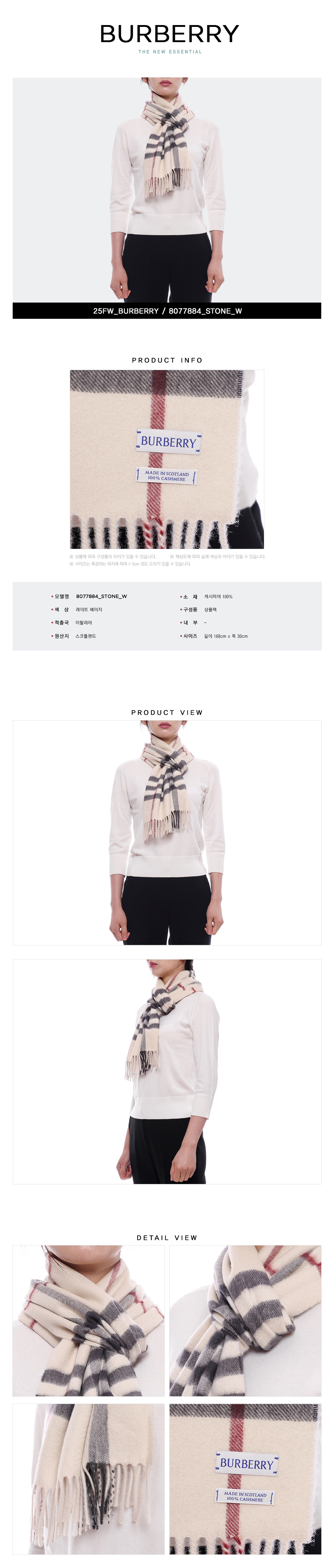 (현대Hmall)버버리 25FW 여성 체크 캐시미어 머플러 (8077884 STONE W 25F)