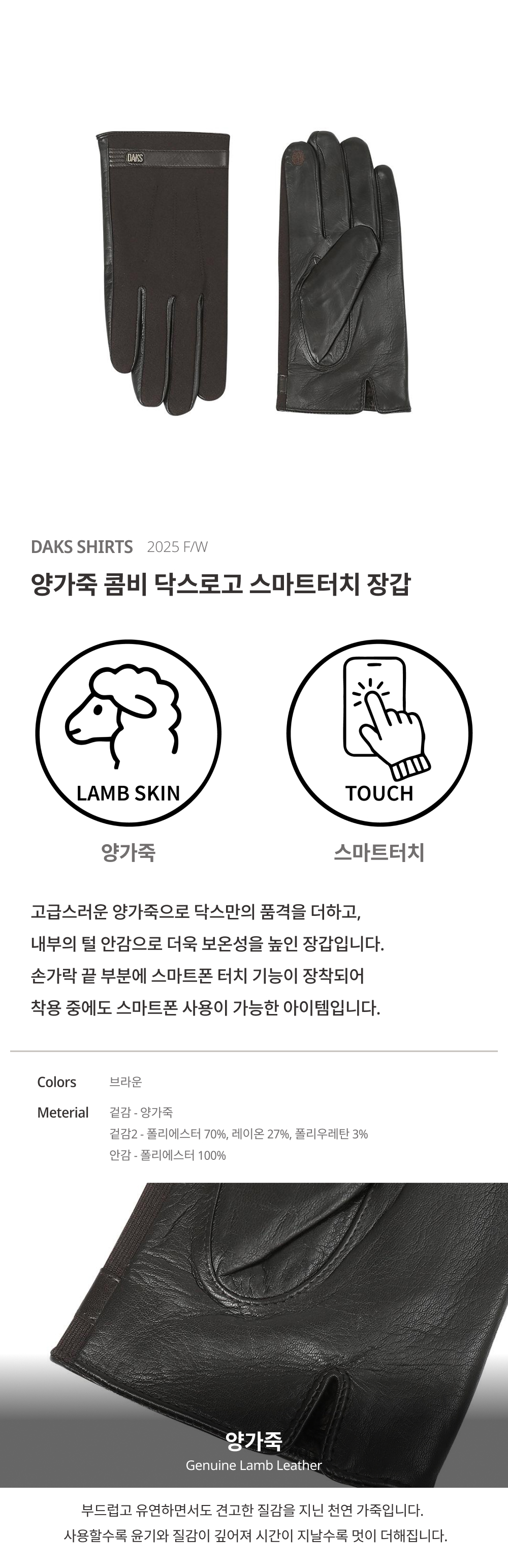 닥스양가죽 콤비 닥스로고 스마트터치 장갑___DLW1ACGV102W1