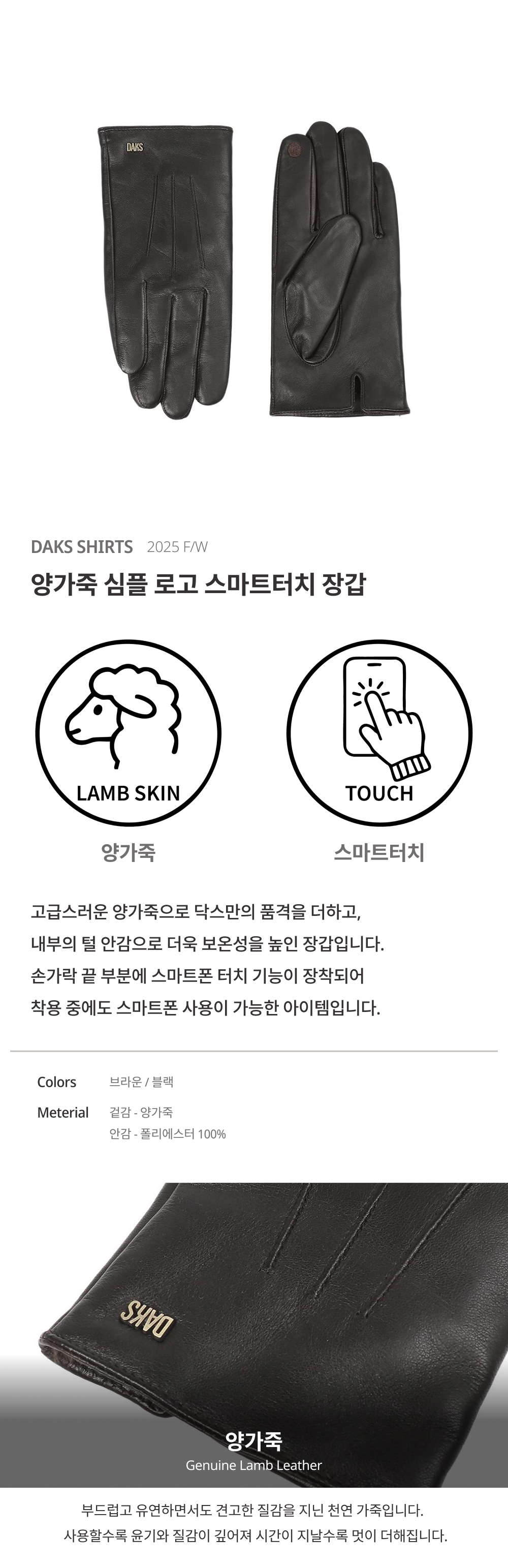 닥스양가죽 닥스로고 스마트터치 장갑_DLW1ACGV204W1