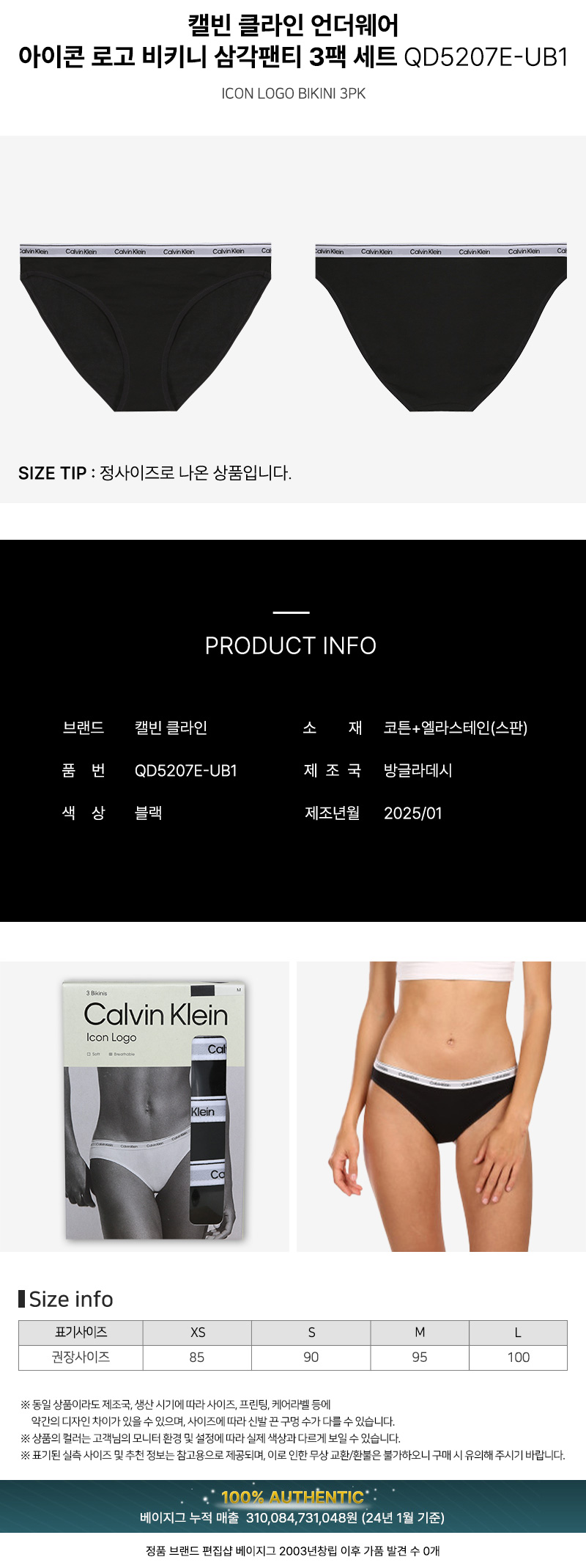 (현대Hmall)캘빈클라인 CK 언더웨어 아이콘 로고 비키니 여성 삼각팬티 속옷 3팩 세트 QD5207E-UB1