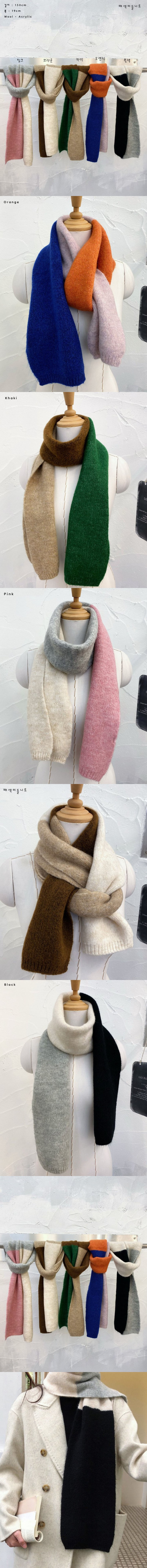 여성 배색 울 니트 두툼한 목도리 머플러색상 : 핑크,카키,오렌지,블랙,브라운사이즈 : 19 , 150cm소재 : 울,아크릴