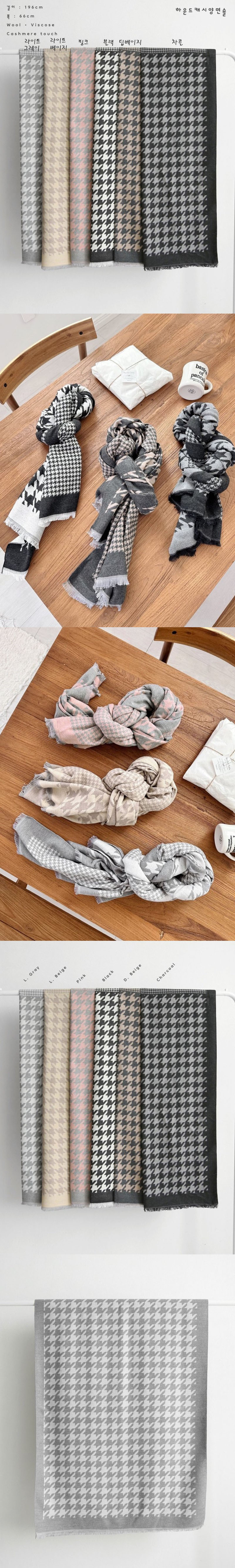 여성 겨울 하운드 체크 부드러운 울 숄 머플러색상 : 라이트그레이,라이트베이지,핑크,블랙,딥베이지,차콜사이즈 : 66 , 196cm소재 : 울,비스코스