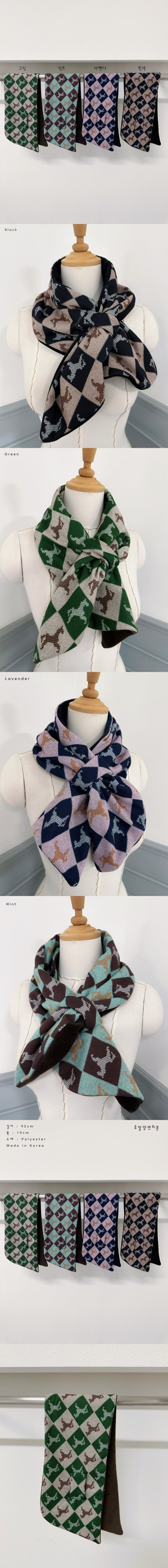 사각 말 패턴 중년 여성 미니 쁘띠 고리 머플러색상 : 블랙,그린,라벤더,민트사이즈 : 19 , 92cm소재 : 폴리