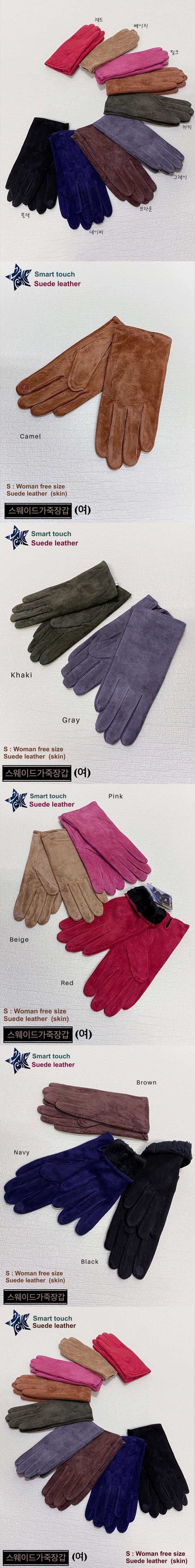 여성 무지 스웨이드 퍼 안감 가죽 장갑색상 : 카멜,카키,그레이,핑크,베이지,레드,브라운,네이비,블랙사이즈 : 프리cm소재 :