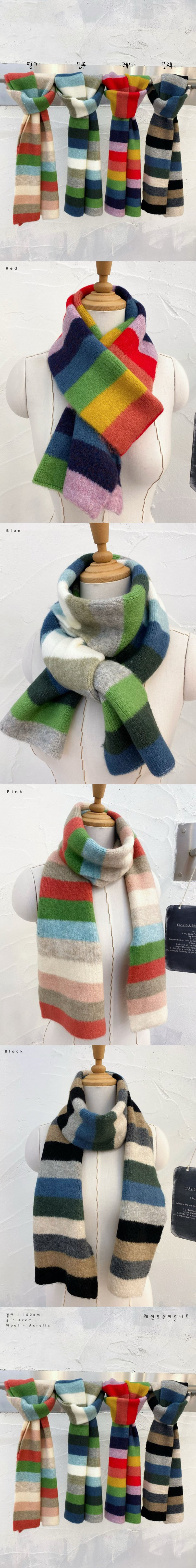 레인보우 울 니트 겨울 미들 머플러 목도리색상 : 레드,블루,핑크,블랙사이즈 : 19 , 150cm소재 : 울,아크릴
