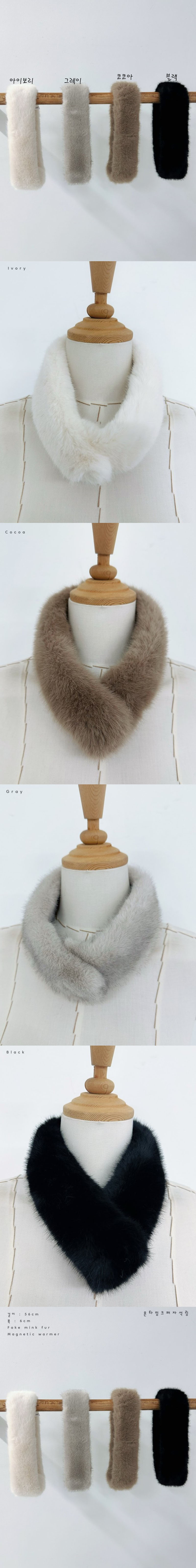 여성 퍼 털 자석 미니 쁘띠 짧은 겨울 머플러색상 : 아이보리,코코아,그레이,블랙사이즈 : 6 , 56cm소재 : 페이크퍼
