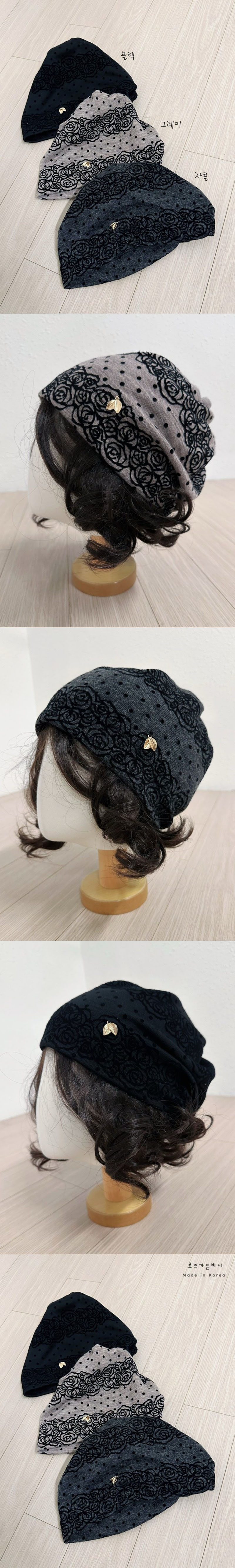 여성 리프 도트 겨울 얇은 방한 비니 모자