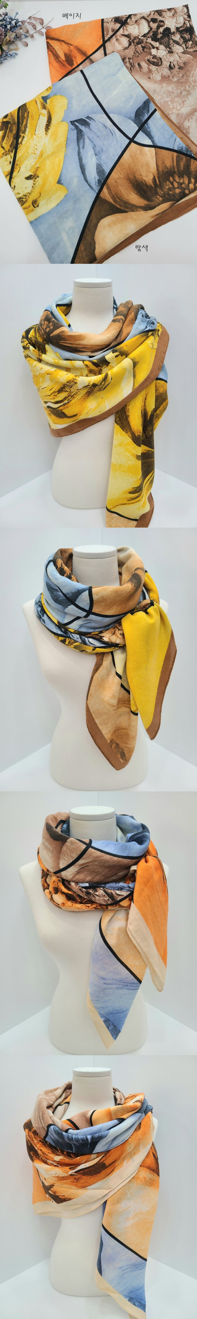 여성 수채화 정사각 미니 쁘띠 스카프색상 : 밤색,베이지,회색,먹색,아이보리,검정사이즈 : 130 , 130cm소재 : 폴리
