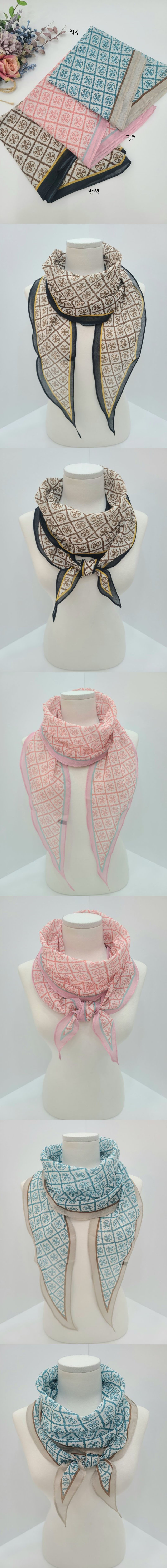 국내 생산 로고 패턴 마름모 롱 스카프
