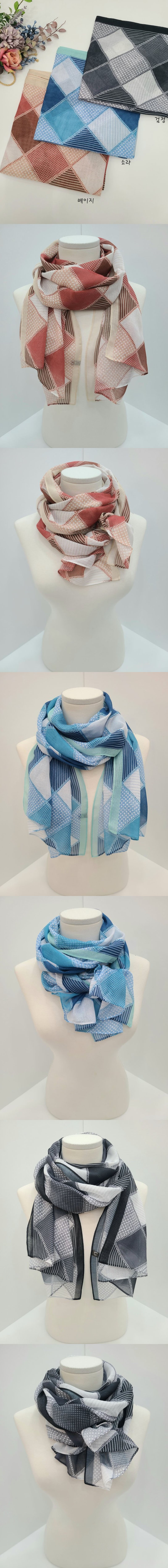 여성 사각 패턴 간절기 얇은 롱 긴 스카프색상 : 베이지,소라,검정사이즈 : 48 , 176cm소재 : 폴리