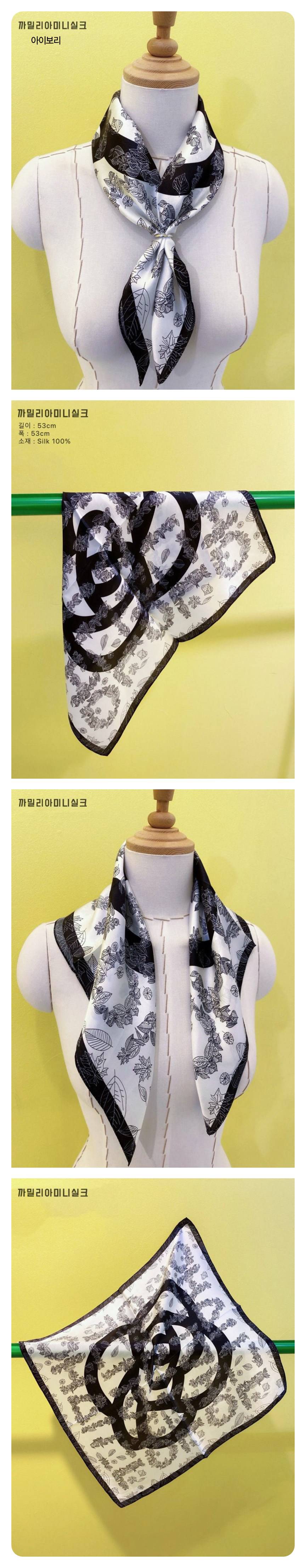 동백 꽃 나뭇잎 미니 실크 정사각 스카프