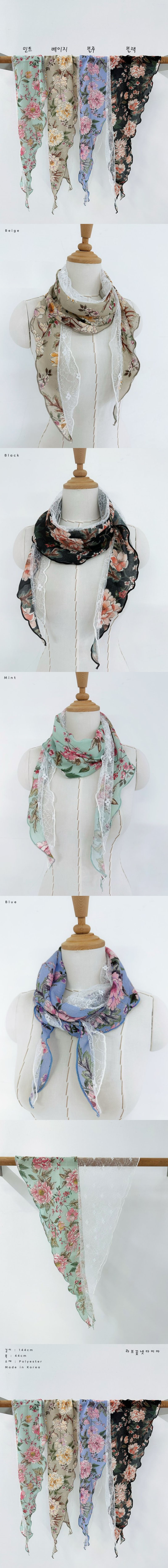 여성 꽃 레이스 봄 가을 롱 목 스카프색상 : 민트,블루,베이지,블랙사이즈 : 44 , 144cm소재 : 폴리