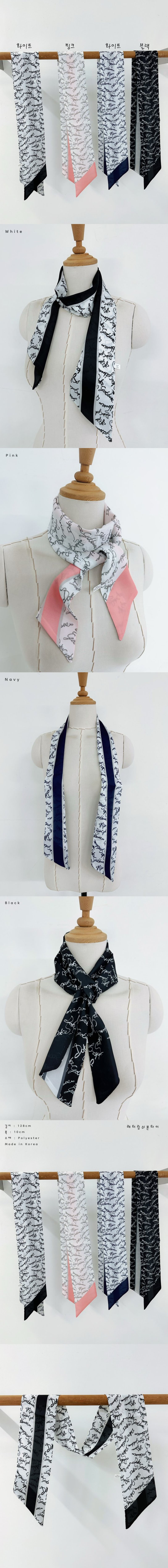 여성 레터링 배색 스키니 얇은 쁘띠 스카프색상 : 화이트,핑크,네이비,블랙사이즈 : 10 , 128cm소재 : 폴리