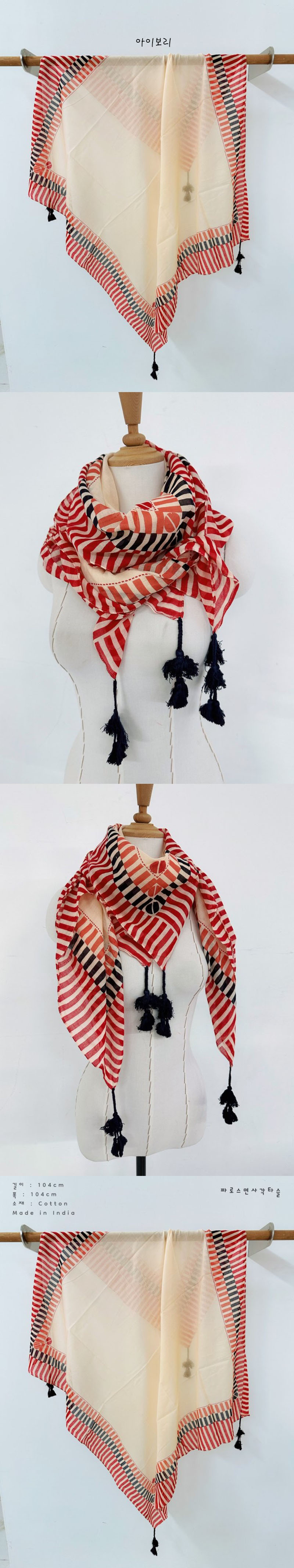 애슬릿 여성 타슬 패턴 간절기 빅사이즈 면 스카프