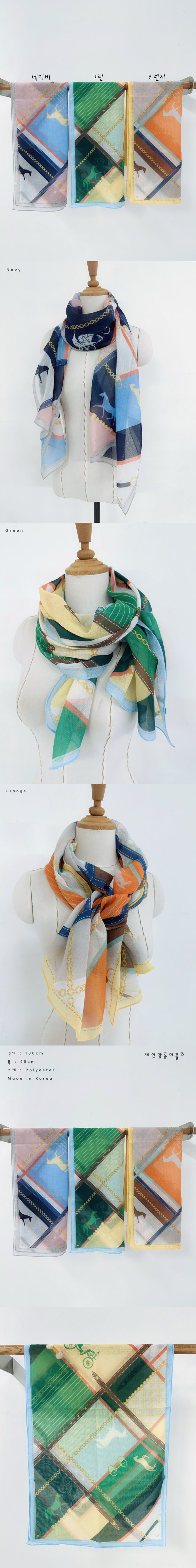 애슬릿 여성 체인 말 패턴 간절기 롱 빅 스카프
