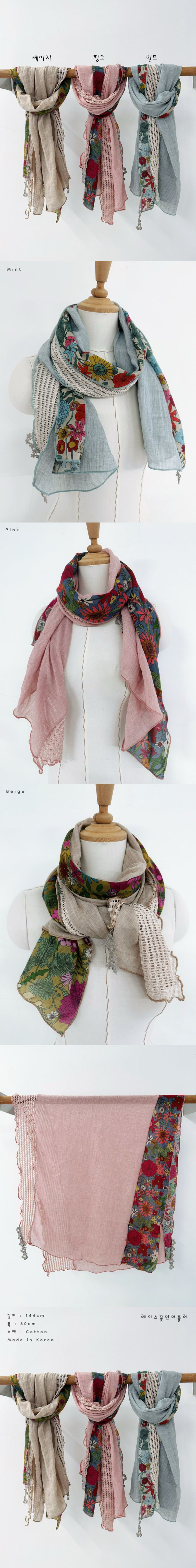 여성 레이스 미니 쁘띠 짧은 삼각 스카프색상 : 민트,핑크,베이지사이즈 : 60 , 144cm소재 : 코튼