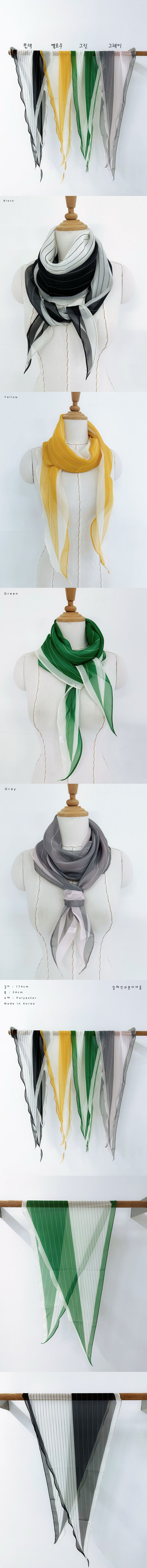 여성 스트라이프 배색 얇은 봄 롱 스카프색상 : 블랙,옐로우,그린,그레이사이즈 : 54 , 174cm소재 : 폴리