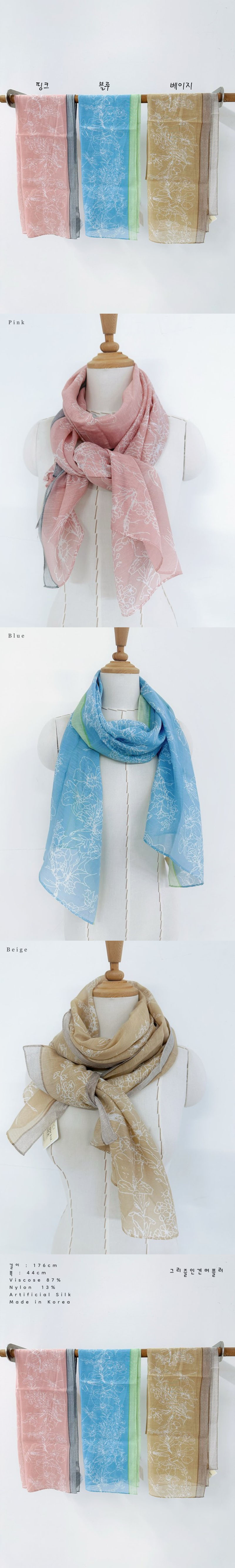 국내 생산 꽃 인견 얇은 롱 긴 스카프