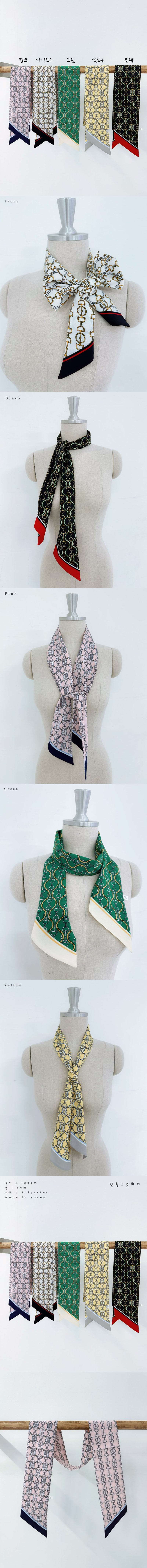 여성 링크 배색 간절기 타이 방도 스카프색상 : 아이보리,블랙,핑크,그린,옐로우사이즈 : 9 , 128cm소재 : 폴리
