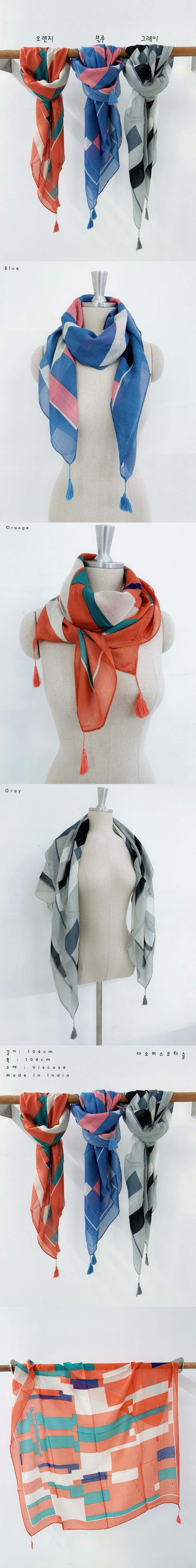 여성 심플 패턴 타슬 정사각 빅 스카프색상 : 블루,오렌지,그레이사이즈 : 104 , 104cm소재 : 비스코스