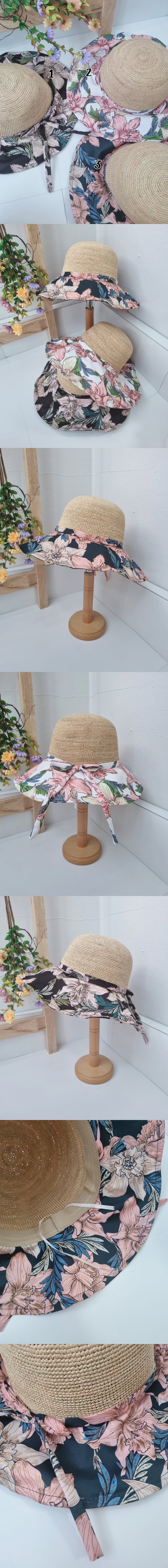 여성 꽃 라피아 밀짚 와이드 챙 비치 벙거지 모자