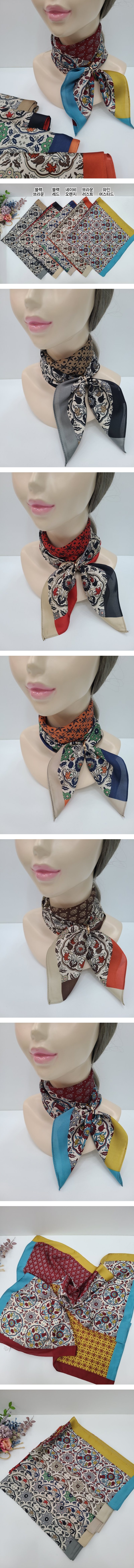 국내생산 여성 블록패턴 손수건 미니 스카프색상:블랙브라운,블랙레드,네이비오렌지,브라운러스트,와인머스타드사이즈 : 70x70cm소재 : 폴리