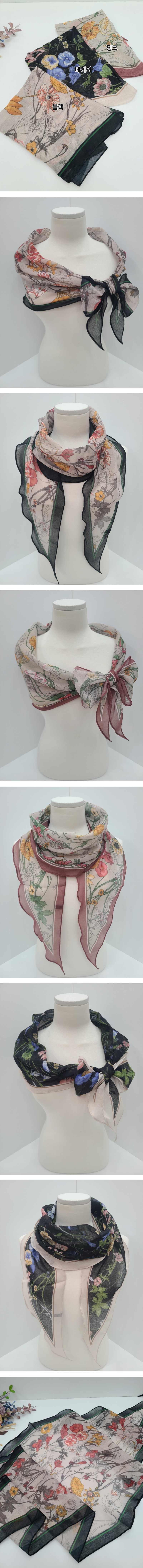 국내 생산 여성 가을 꽃 마름모 롱 스카프