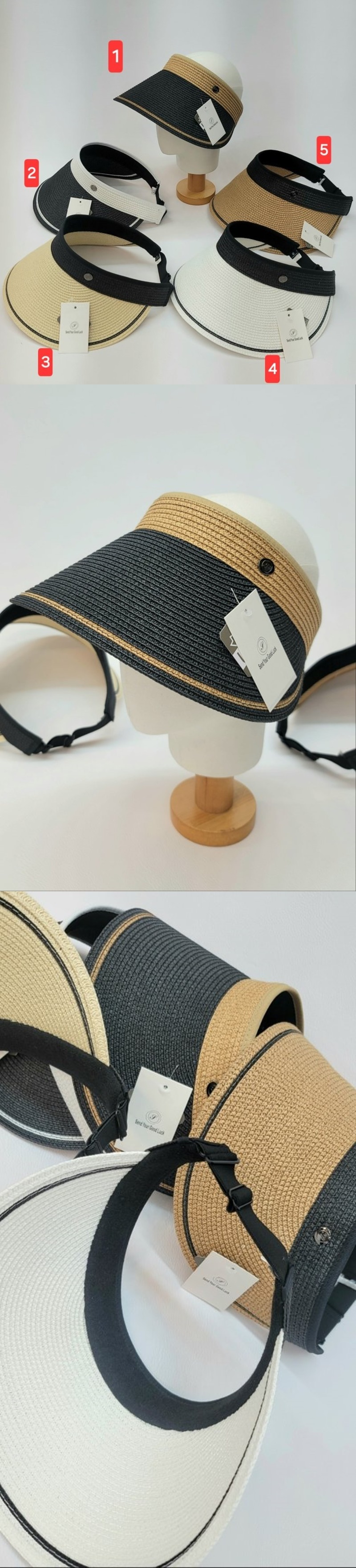애슬릿 여성 배색 바캉스 밀짚 라탄 대두 와이드 썬캡