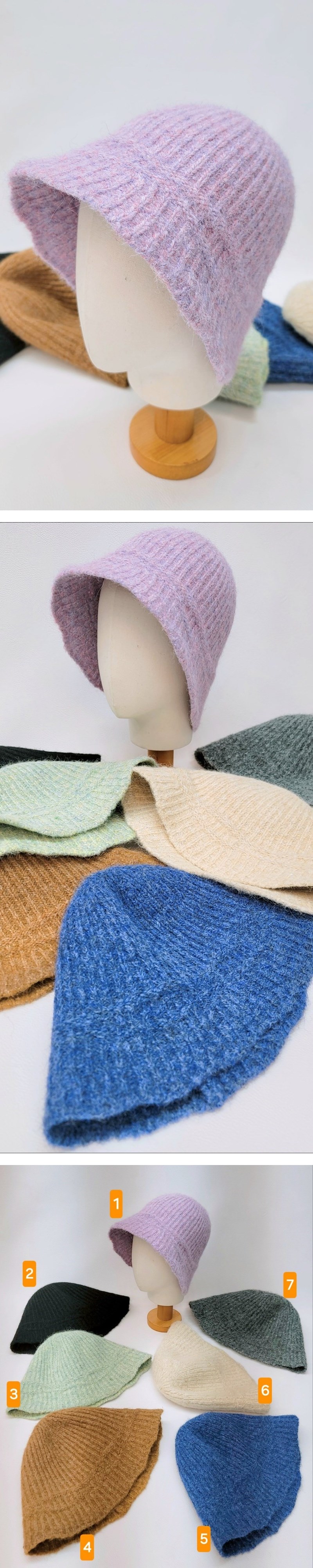 보카시 배색 니트 벙거지 모자 여성 버킷햇색상:1,2,3,4,5,6,7사이즈 : 0cm소재 : 울/모,나일론