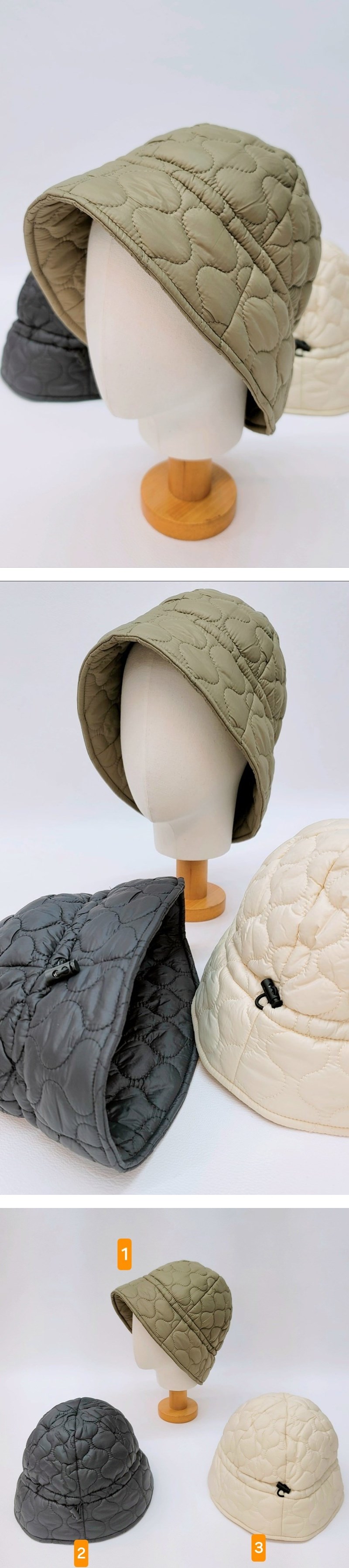 퀼팅 패딩 스트링 벙거지 여성 겨울 방한 모자