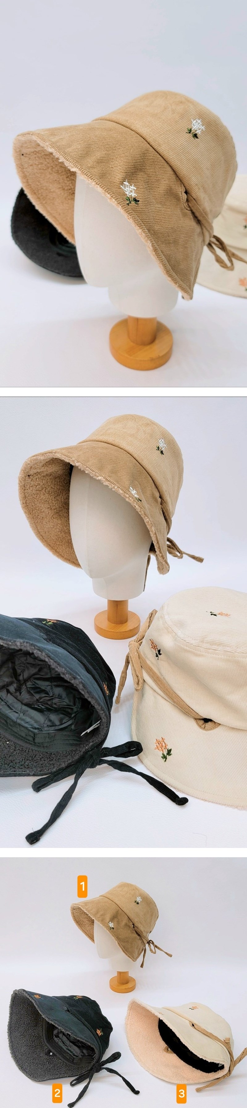 애슬릿 골덴 리본 방한 벙거지 여성 겨울 털 모자